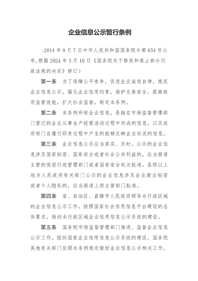 企業信息公示暫行條例