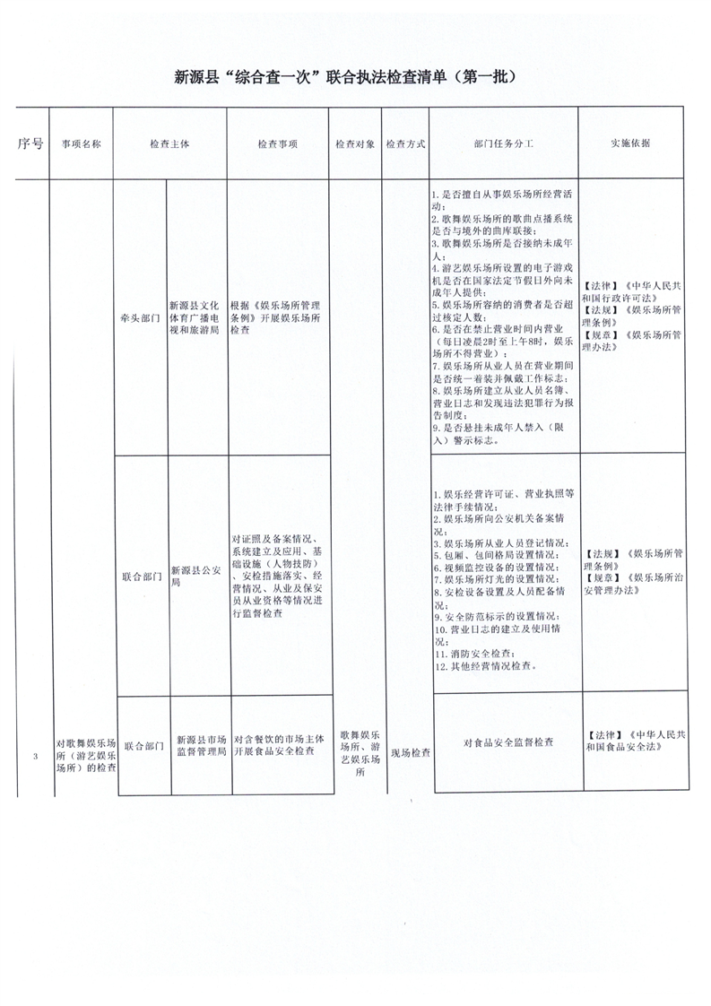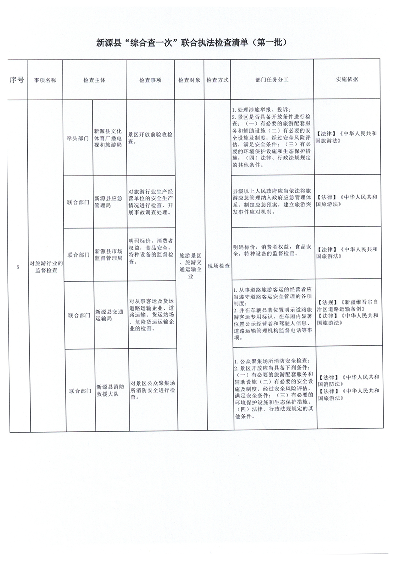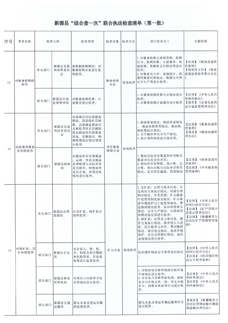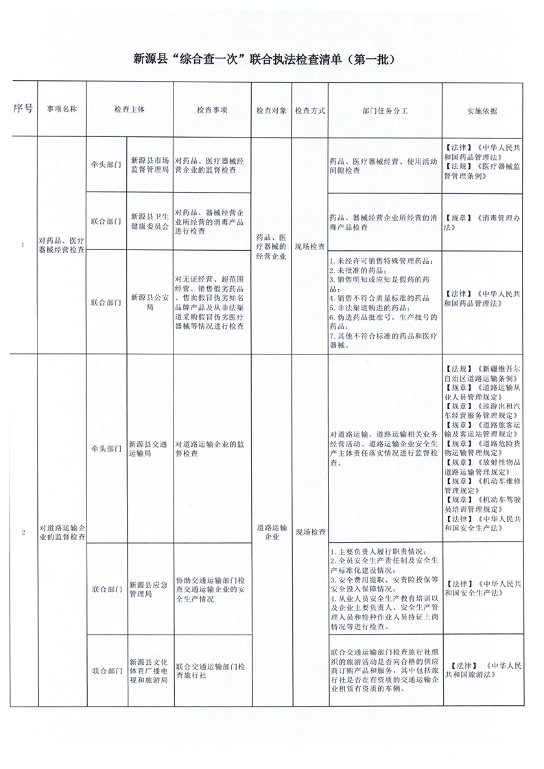 新源縣“綜合查一次”聯(lián)合執(zhí)法檢查清單(第一批)