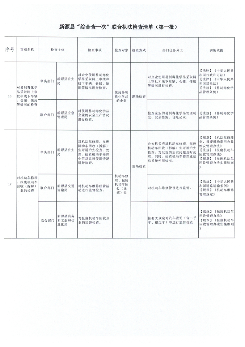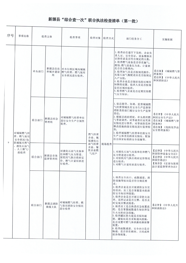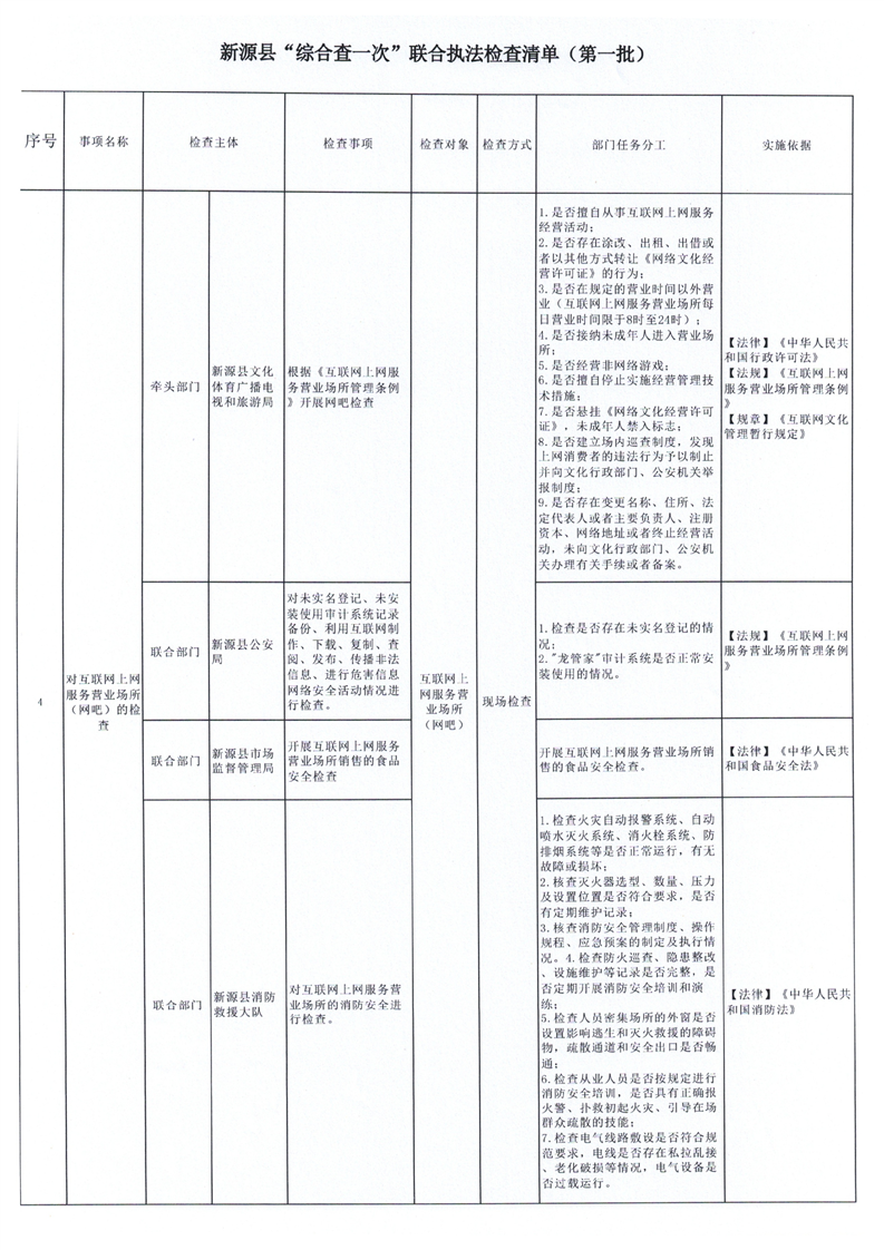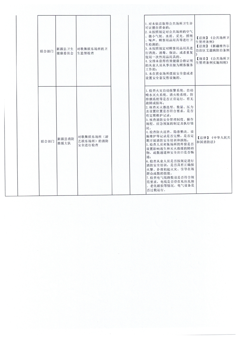 新源縣“綜合查一次”聯(lián)合執(zhí)法檢查清單(第一批)