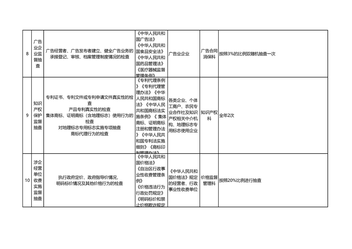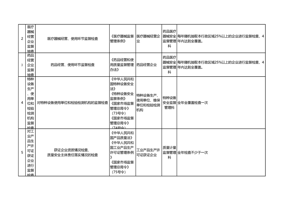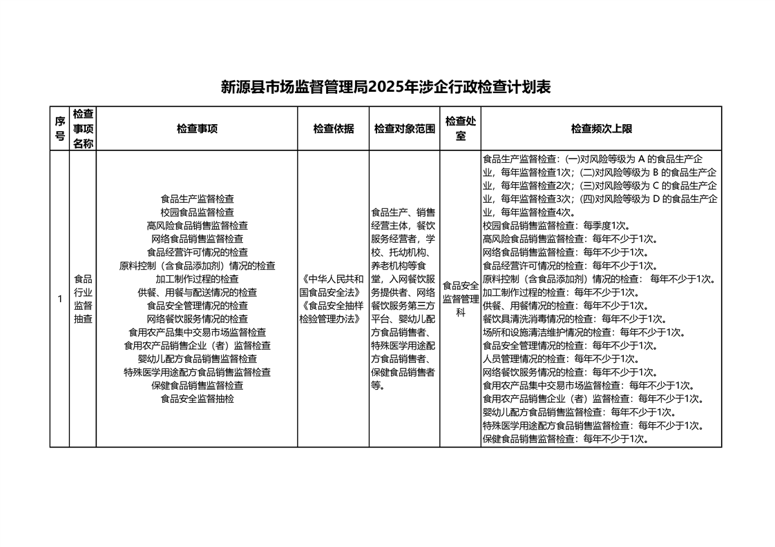 新源縣市場監(jiān)督管理局2025年涉企行政檢查計劃表