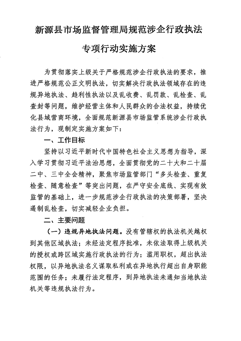 新源縣市場監督管理局規范涉企行政執法專項行動實施方案