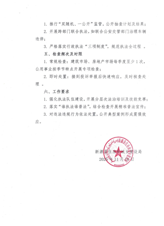 新源縣住房和城鄉(xiāng)建設(shè)局“綜合查一次”行政執(zhí)法檢查計(jì)劃