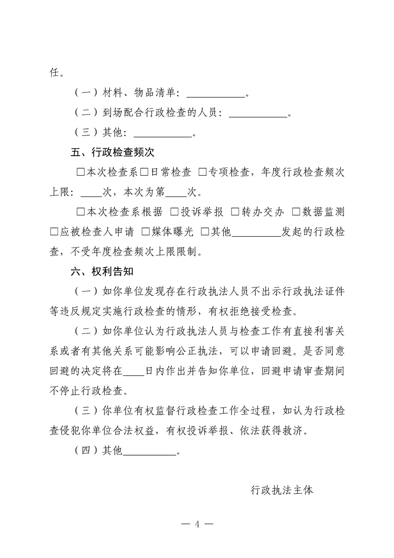新源縣農(nóng)業(yè)農(nóng)村局行政檢查文書基本格式