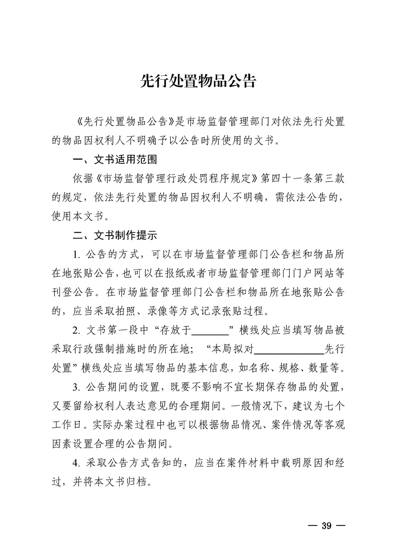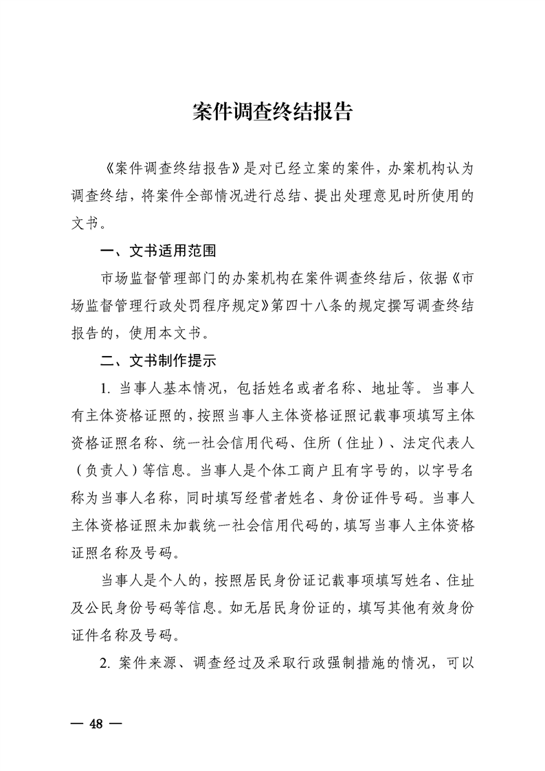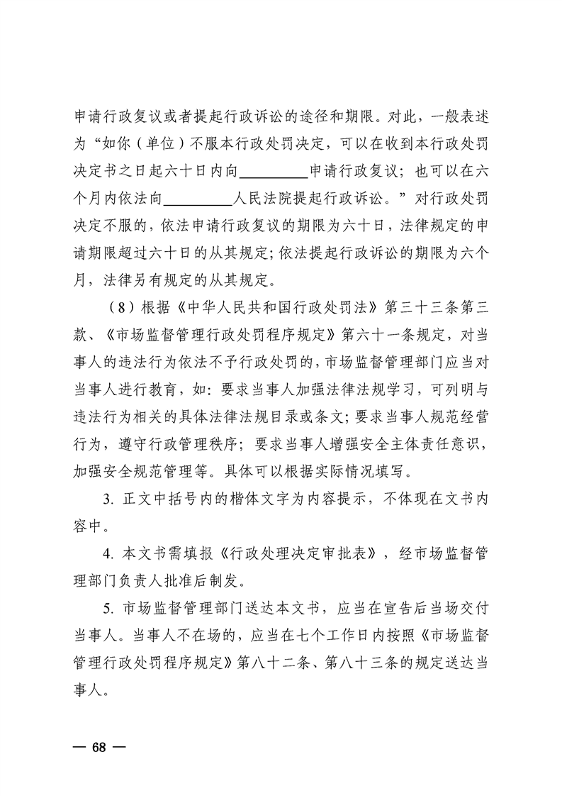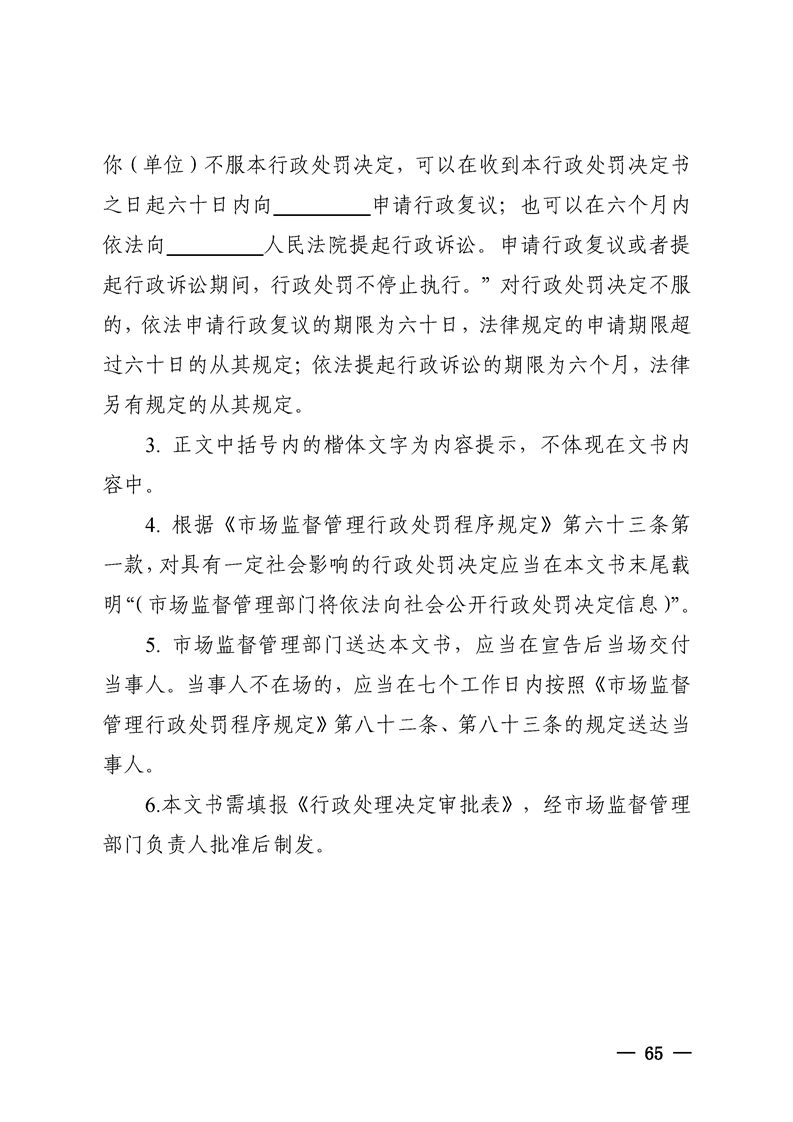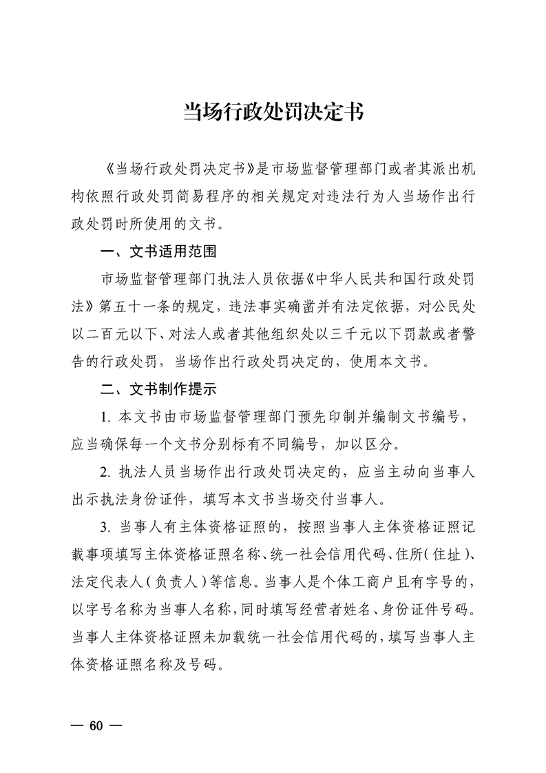 市場監督管理行政處罰文書格式范本及使用指南(2021年修訂版)